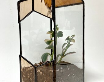 Stained Glass Terrarium Patterns Lead Light Stained Glass Terrarium Colonial Plant House Hermit Crabs Glass Terrarium Faux Stained Glass Leaded Glass